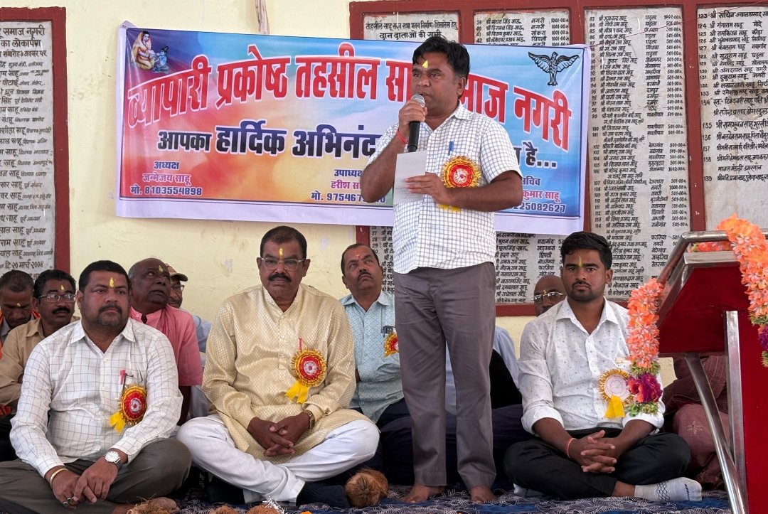 नगरी। तहसील साहू समाज नगरी द्वारा आयोजित तहसील स्तरीय किसान/व्यापारी संगोष्ठी समारोह में जिला पंचायत अध्यक्ष अरुण सार्वा मुख्य अतिथि के रूप में शामिल हुए।